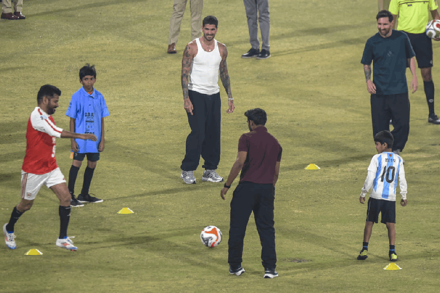 Leo was unprepared, and Biswas pounced on the opportunity, holding him by the waist as if vying for the ball in a FIFA World Cup final. Only to Messi’s surprise, it was not a French or German defender around him. It was Biswas. Messi looked uncomfortable, yet smiled for a few photographs and left as soon as possible, eager to stay away from tackles and ministers alike.