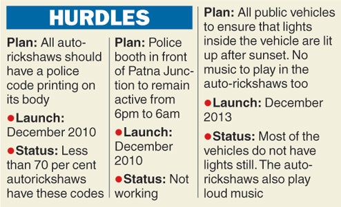 'The plan included the unique code in autorickshaws, police booth monitoring movements of the vehicles and helping passengers at Patna Junction from 6pm to 6am. Both went on for a while and were ignored after sometime. The cops woke up in 2012 after the December 16 gang rape in Delhi. Amrit Raj, who was senior superintendent of police then, had added a few things directing that all city buses and autorickshaws should be lit up inside when they are plying after sunset so that the passengers are visible. The officer had also added that no loud music of any kind should be played by drivers while they are carrying passengers. Again, the police started checks but soon it lost steam. Now, it can be said to be a wake-up call again after the Delhi incident,' the officer said.
