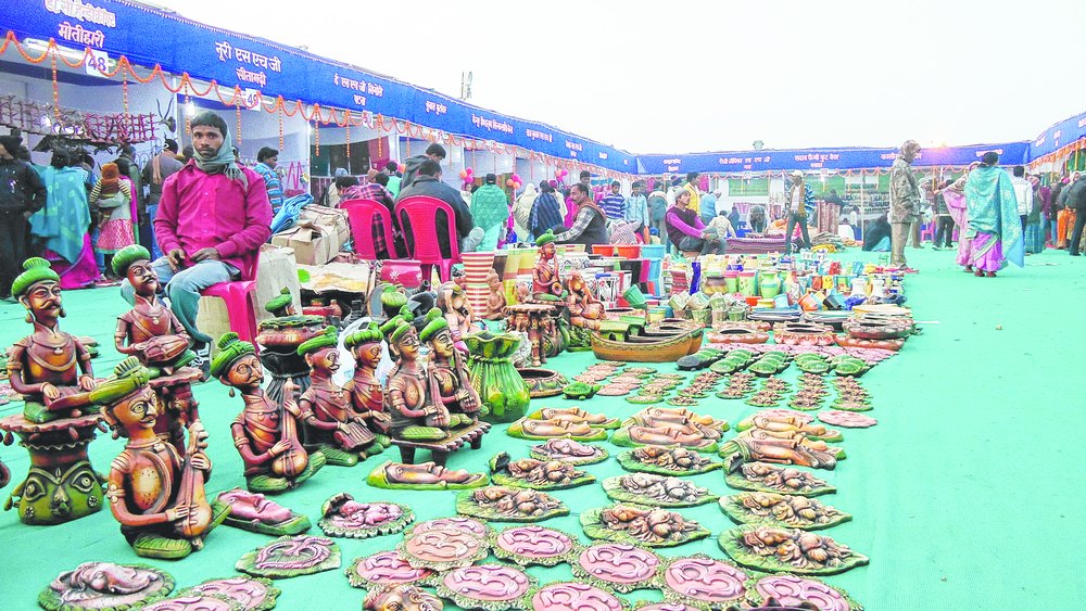 Terracotta showpieces on display at Rajgir Mahotsav at Quila Maidan on Monday.Pictures by Piyush Kumar Tripathi