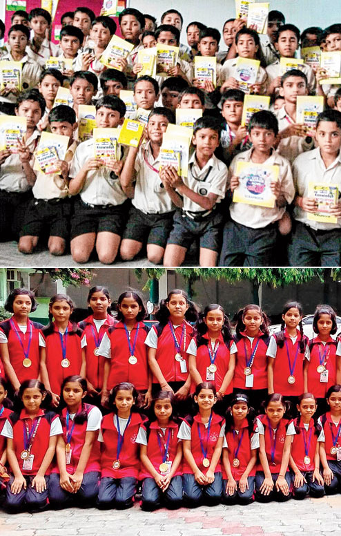 (Top) Gyan Niketan, Patna and St Paul's High School, Hajipur students with their Telegraph Genius awards on Tuesday. Telegraph pictures