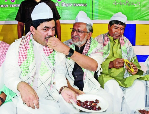 LJP leader and minister in the state Pashupati Kumar Paras (also in picture), vice-chairman of state Legislative Council Harun Rashid and RLSP MLA Lalan Paswan were others who attended the iftar.