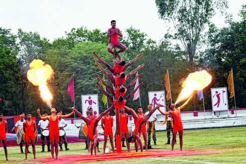 Gaya: Trainees and trainers of the Officers' Training Academy, Gaya, on Friday joined hands to display valour, adventure and skills, including horse-riding, physical training, gymnastics, micro-light flying, conventional Indian sports like malkhamb, sky-diving and band music, at a 75-minute programme, named multi activity display.