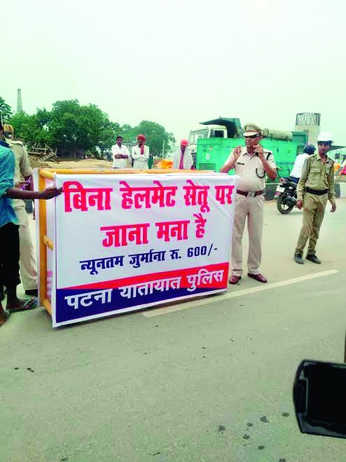 Vishal Kumar (22) of Digha was left off with a warning. "Thank God the SP did not force me to pay. Next time, I will surely wear my helmet not only on the bridge but everywhere," Vishal said.