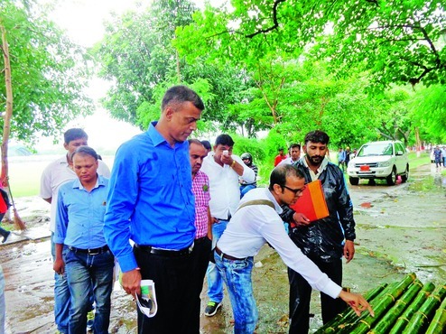 Patna divisional commissioner Anand Kishor inspects the ground on Monday. Telegraph picture