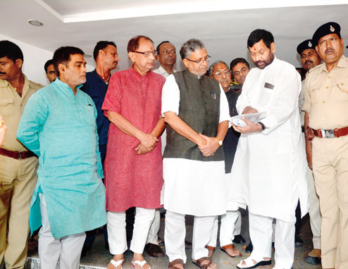 | Union minister Ram Vilas Paswan with BJP leaders in Patna on Tuesday . Picture by Nagendra Kumar Singh |