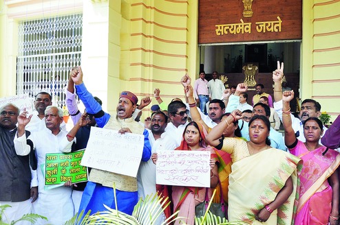 Patna: Dalit RJD MLAs and leader of Opposition Tejashwi Prasad Yadav on Friday pro-tested against the central government over the Supreme Court ruling on the SC/ST Act.