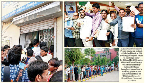 The worst hit was Patna general post office (GPO) where cash reached around 5pm. It was still in the process of being counted. Bankipur post office in Patna could commence operation only around 4 pm.