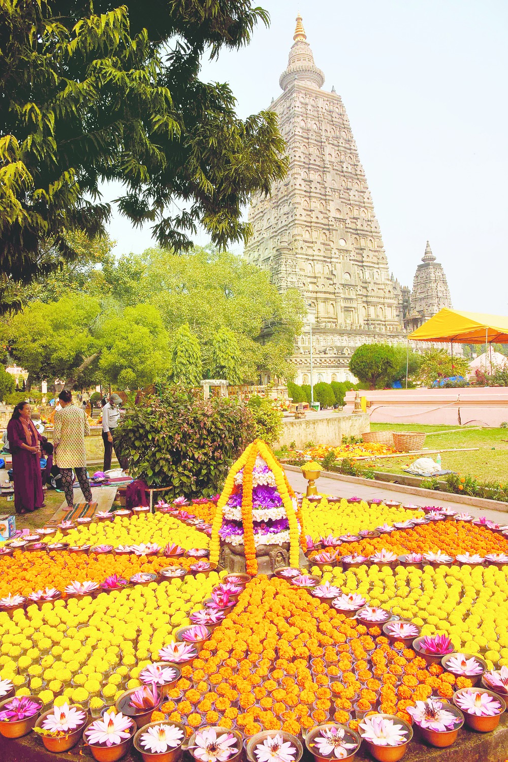 The premises of the Mahabodhi Mahavihara decked up on the occasion of the Tibetan New Year, Losar, in Bodhgaya on Tuesday. Picture by Suman