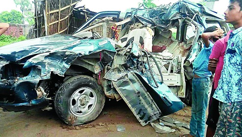The impact of the accident was so severe that the SUV was crumpled into a mass of iron. Maner police identified the five as Pappu Kumar (20), Rajesh Kumar (22), Ankush Kumar (19), Shravan Kumar (20) and Nitesh Kumar (20), who were returning from Moudehi village in Bihta to Maner after attending a marriage.