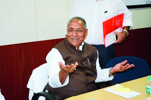 Road construction minister Nand Kishore Yadav speaks to reporters in Patna on Friday. Picture by Nagendra Kumar Singh