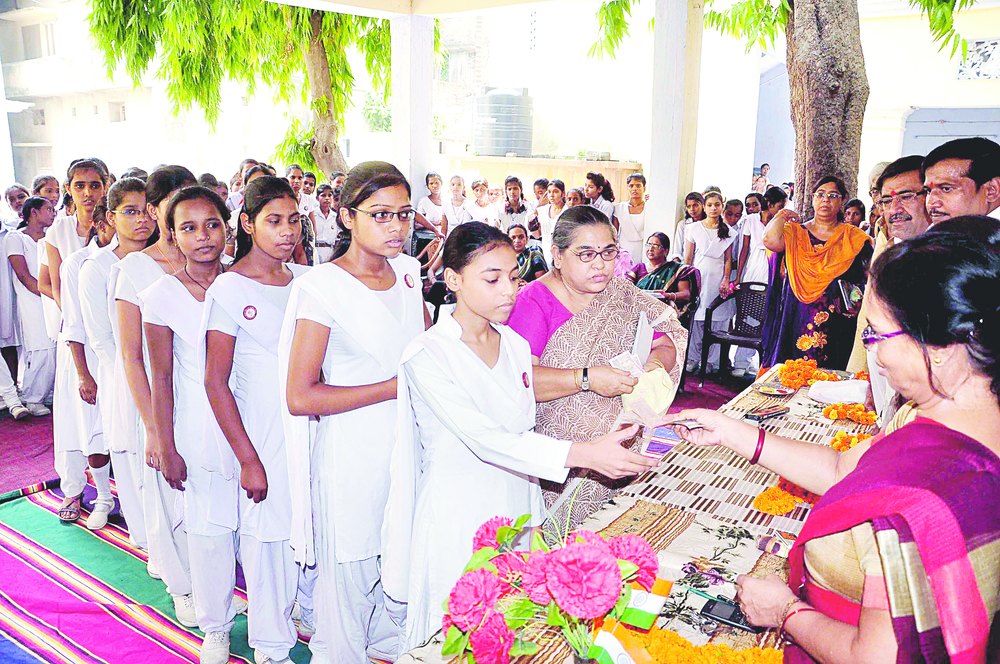 Students of Narayani Kanya High School receive money for a bicycle and clothes in Patna City on Friday. Picture by Sachin
