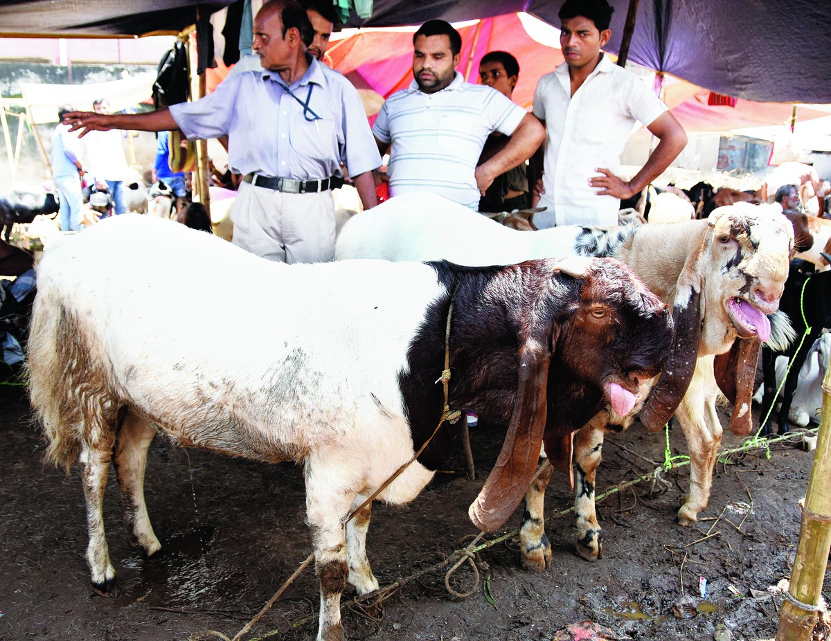 Shamsher has brought his pair of specially bred goats from Balliah district of Uttar Pradesh. "Both Salman and Shah Rukh are up for sale for this year's Bakrid celebrations at Rs 11 lakh each," said Qureshi, their proud owner and one of the sellers at the Bakri Bazaar (goat market) near Jagdeo Path in Patna.