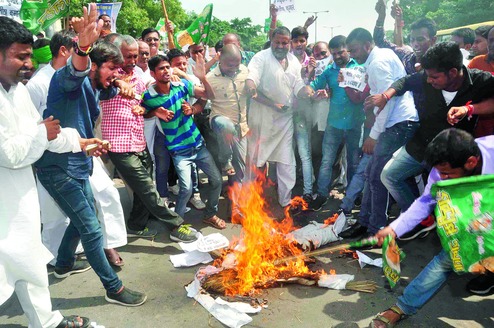 Patna, July 27: As the RJD workers protested Nitish Kumar's "betrayal" by blocking roads, the party's leaders hurled verbal missiles at the chief minister.
