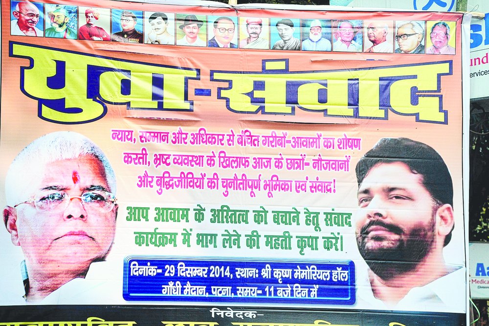The Yuva Shakti poster with pictures of RJD chief Lalu Prasad and Pappu Yadav in Patna on Sunday. Picture by Ranjeet Kumar Dey