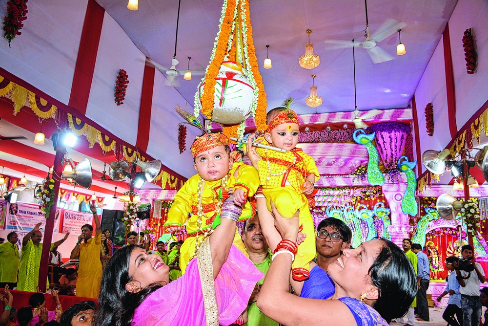 Toddlers dressed as Krishna take part in Janmashtami celebrations at Maharana Pratap Bhavan on Thursday. The venue was decorated with fruits and flowers. Artistes enacted Lord Krishna's birth. Around 1,000 devotees took part in the celebration. The high point of the day was little children dressed as Krishna feeding butter to each other. The children's mothers came dressed as Yashoda. At the celebrations at Dadiji Temple artistes enacted beautiful moments from Krishna's life. "Lord Shiv came in the guise of a gopi (cowherd girl) to see little Krishna's antics. The artistes enacted the scenes very beautifully," said Amar Agrawal, one of the members of the temple management committee. The Patna chapter of Iskcon organised a cultural programme at SK Memorial Hall in which artistes from a Calcutta-based group performed various episodes from Krishna's life. Devotees from Vrindavan, Calcutta and London had arrived to take part in the event. Mahavishnu Swami Maharaj, an Iskcon guru from London, also took part. "Lord Krishna would be given a bath with 151 water-filled silver pots at midnight," said Iskcon Patna's president Krishna Kripa Das. Text by Shuchismita Chakraborty, picture by Nagendra Kumar Singh