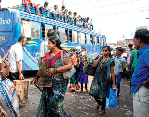 Packed vehicles and chock-a-block bus stands on Tuesday reflected the mad scramble of people to be back home for Chhath.