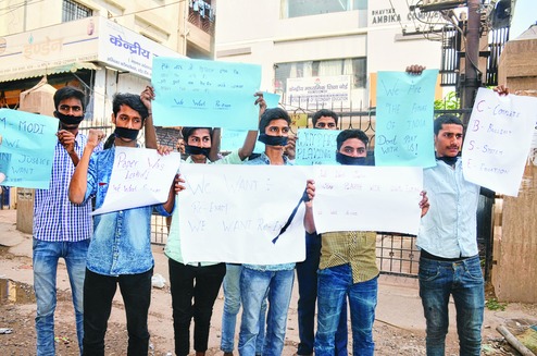 Patna: A handful of Class X CBSE students protested in front of the CBSE regional office on Saturday demanding re-exam of the class X mathematics paper.