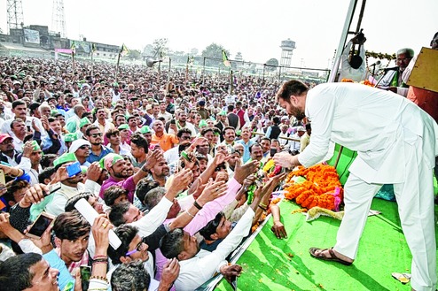 Tejashwi was addressing people on the second day of the Samvidhan Bachao Nyay Yatra in Madhubani district, 200km northeast of Patna. "Nitish Kumar ji sent my father to jail through a conspiracy and now he is tapping my phone calls to put me behind bars," Tejashwi said while addressing around 60,000 people at Shri Krishna Yadav High School, Barhi, in Phulparas. He began his speech speaking in Maithili, saying paan (betel leaves), makhana (Gordon nut) and maach (fish) are from the Mithilanchal region were the most popular. He greeted people in Maithili, drawing public applause.