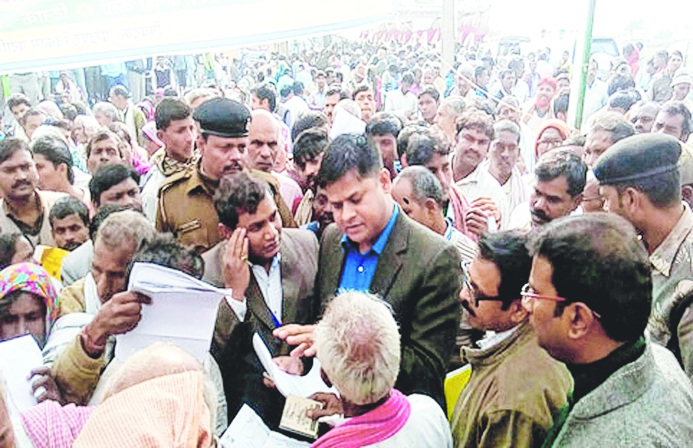 Buxar district magistrate Raman Kumar listens to complaints of people at the janata durbar in Rajpur block of the district on Sunday. Picture by Sanjay Choudhary