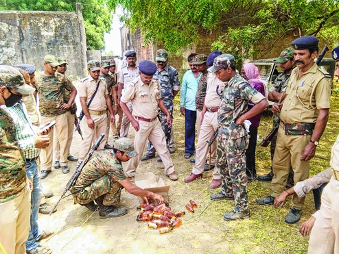 By Gaya SSP Nishant Kumar Tiwari (left) at the news meet on Tuesday. Picture by Suman Alok Kumar in Gaya