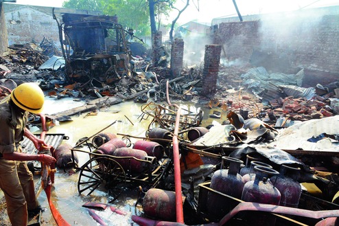 Godown gutted in LPG blasts