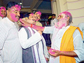 Diversities fade as MLAs paint the House red - Holi hai! Sasaram legislator greets friends and foes at Assembly gate, croons festival songs