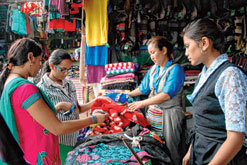 Tradition meets modernity in Tibetan collection - Shopkeepers think of rain cover to overcome cloudy conditions and avoid low footfall