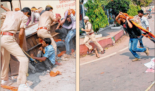 Students turn road into war zone - ABVP members join pitched battle with police in R-Block