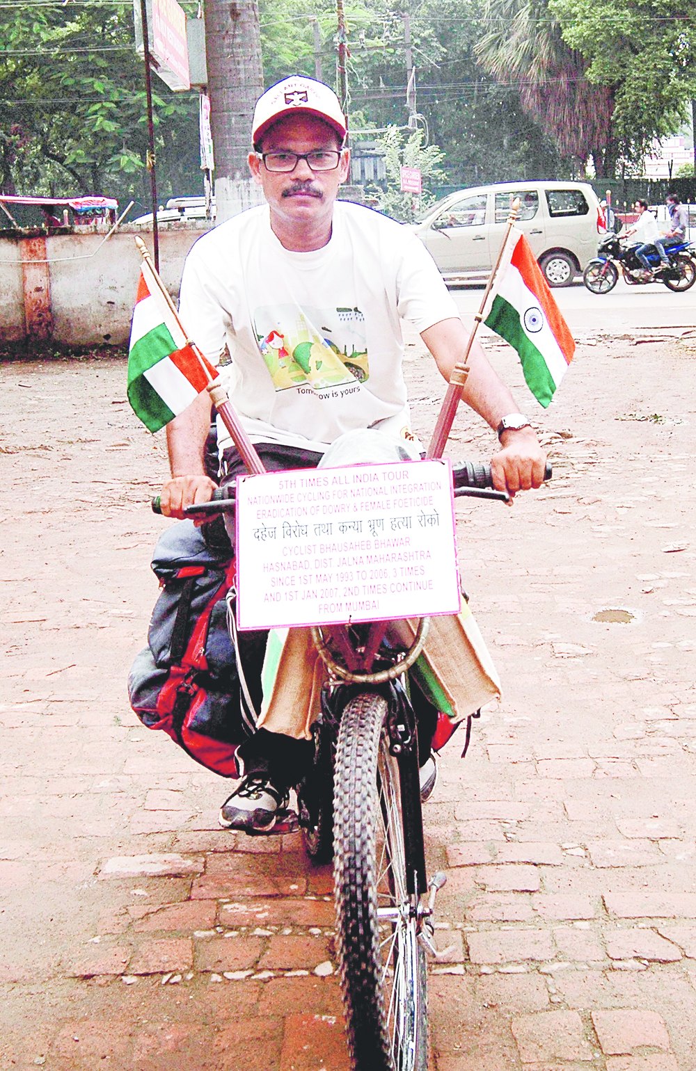 Bhausaheb Bhawar has been pedalling across the country to spread awareness about dowry, female foeticide and education.