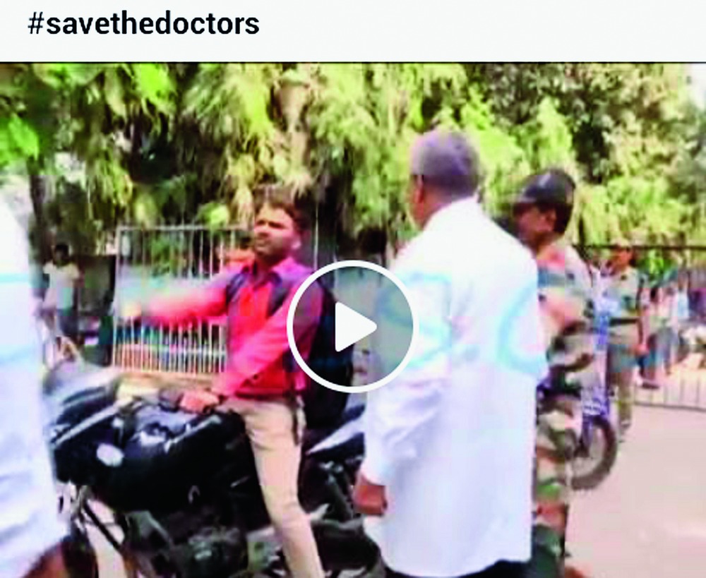 They are uploading videos of the incident on Facebook in which principal Sinha is seen scolding and slapping the student after he did not seem satisfied with his answer when quizzed about the reason of parking his vehicle in the barricaded area in front of the hospital's emergency wing.