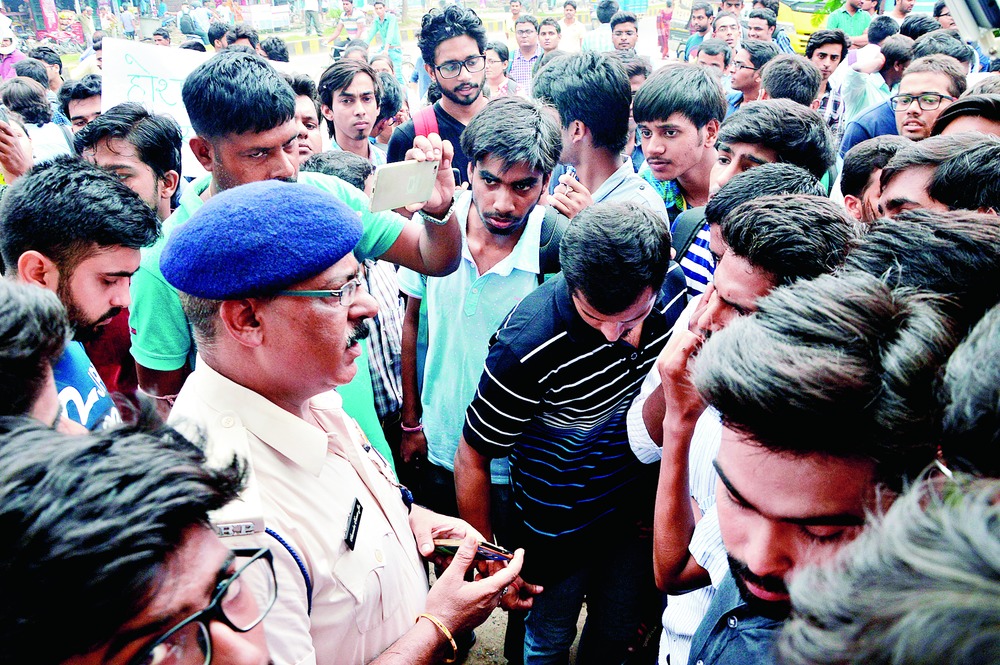 The law school administration and students claim that the arrested young man has been falsely implicated in the case. Patna police say the arrest was made on the basis of a complaint lodged by the girl he allegedly harassed, and her mother.