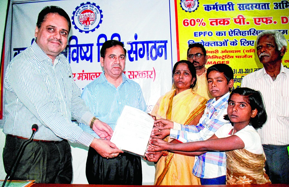 "The fund is of great importance for me," a sobbing Babita said after receiving the cheque and the certificate. "After the death of my husband, I was worried how I would take care of my children. But the fund provided by the Employees' Provident Fund Organisation has come as a great relief."