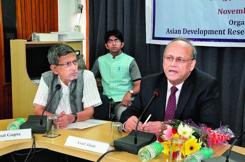 REFORMS AFTER ARAB SPRING: Asian Development Research Institute member-secretary Shaibal Gupta and (right) Asad Alam, World Bank country director for Egypt, Yemen and Djibouti, at the seminar on "Egypt - Renewing the Social Contract" in Patna on Friday. "Egypt has undertaken a slew of reforms in the last three years to pull its economy out of decades of slumber - the same set of uncertainties where people were outraged over worsening public services, suffering from high rates of stunting and huge spatial inequalities which triggered Arab Spring," said Alam on the Adri campus. He added that Egypt had once pledged a kind of highly inclusive "contract" to its people in the form of inclusive education, better health and jobs. "Social contract can have different meanings as society keeps evolving, and the contract must change accordingly, too," he said. Drawing similarities between India and Egypt, Alam said both countries have suffered from huge subsidy spends for a long time. Text by Dipak Mishra, picture by Manoj Kumar