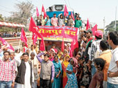 | CPI-ML (Liberation) activists hold up a train near Ara during the bandh on Tuesday. Picture by Sanjay Shrivastava |
