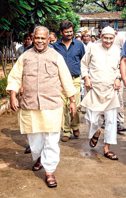 | Chief minister Jitan Ram Manjhi and education minister Brishen Patel in Patna on Monday. Picture by Nagendra Kumar Singh |