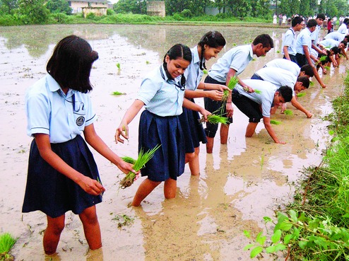 Nearly 150 school and college students learnt on Tuesday how to transplant paddy seedlings in a field submerged in water, thanks to a programme organised for them by Tarumitra Ashram in Patna.