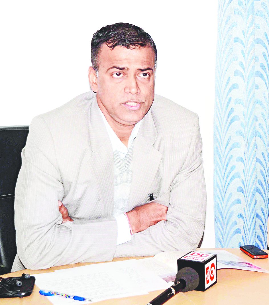 Anand Kishore, the secretary of art, culture and youth affairs, addresses the media in Patna on Saturday. Picture by Ranjeet Kumar Dey