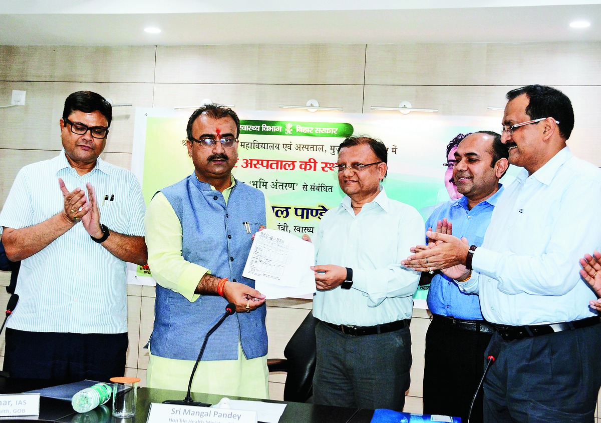 Health minister Mangal Pandey on Tuesday handed over the land transfer-related papers to officials of the Tata Memorial Hospital (TMH), Mumbai, which is governed by Atomic Energy Commission (AEC). The AEC had submitted the proposal of the project.