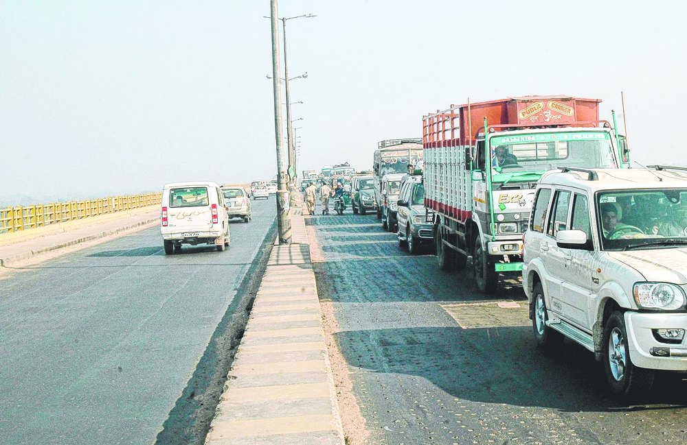 Vehicles on the Mahatma Gandhi Setu en route to their destinations on Monday. Picture by Ashok Sinha