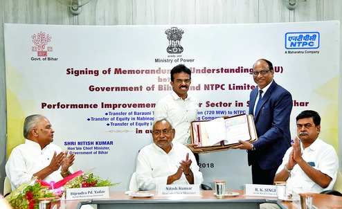 The MoU was signed in the presence of chief minister Nitish Kumar, Bihar energy minister Bijendra Prasad Yadav, Raj Kumar Singh, Union minister of state (independent charge) for power and new & renewable energy, and senior officials of the NTPC and state power companies.