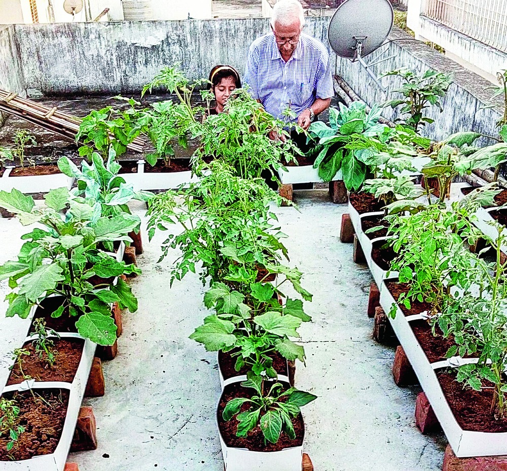 Jainendra Kumar (64), a professor in the botany department of College of Commerce, Arts & Science, started soil-less farming on a 500sqft area at the rooftop of his house one-and-a-half-months back. The sexagenarian is growing vegetables like rich gourd, bottle gourd, beans, brinjal and cauliflower through this method.