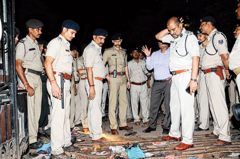 | Senior police officers inspect the stampede site at Gandhi Maidan on Friday night. Picture by Sachin |