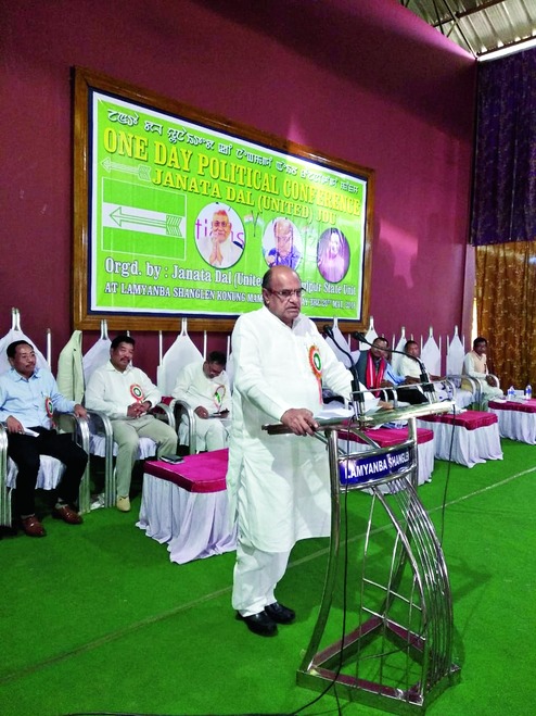 Nitish's party organised a one-day political conference at the Lanyamba Shanglen Konung Mamang hall in Imphal, the capital of the northeast Indian state, on Sunday.