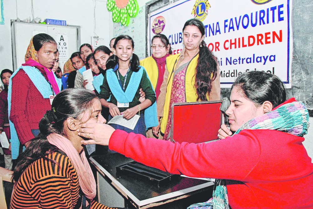 An ophthalmologist checks a student of Bankipore Girls' High School at a free eye check-up camp held at the institution in Patna on Tuesday. Lions Club Patna Favourite organised the camp in association with Sri Sai Lions Netralaya. Amrita Bhushan, the president of Lions Club Patna Favourite, said free medicines and spectacles were distributed among the schoolchildren who were diagnosed with eye problems. Bhushan added: 'The members of Lions Club Patna Favourite are dedicated to their mission to serve mankind. We organise such activities throughout the year.' Text by Shuchismita Chakraborty, picture by Ashok Sinha