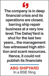 In a filing before the BSE, the company said: "The company is in deep financial crisis and its operations are closed, barring ship repair business at a very low level. The Dahej Yard is shut for the last two years with labour and staff taking part in agitations.