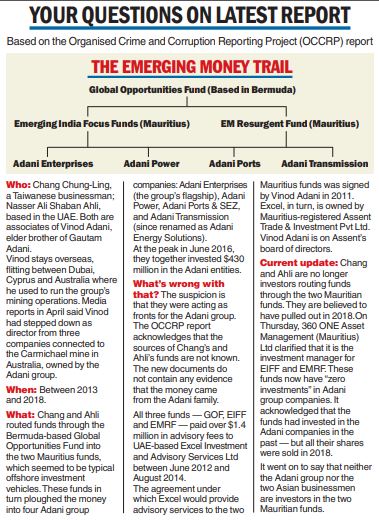 The OCCRP report claims that two Asian businessmen — Nasser Ali Shaban Ahli from the United Arab Emirates and Chang Chung-Ling from Taiwan — had conspired to funnel funds through two Mauritius-based investment funds into the stocks of four Adani group companies.