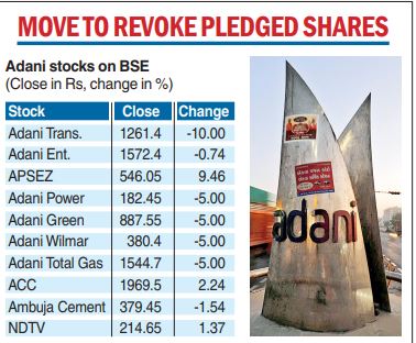 The Adani group has pre-paid $1.114 billion or Rs 9,200 crore of loans taken against pledged shares as part of a move to prepay all sharebacked financing in the wake of the damaging allegations of US short-seller Hindenburg.