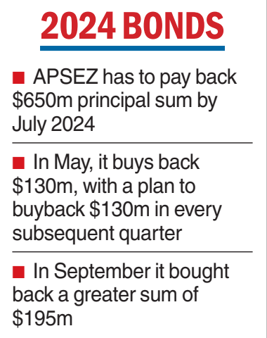 During the first round of buyback in May, APSEZ had said it would buy back 20 per cent of the $650 million principal ($130 million) for five consecutive quarters.