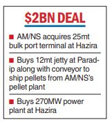 The assets include a 25mt all-weather, deep draft bulk port terminal at Hazira, Gujarat, captive and adjacent to the steel plant, a 12mt deep-water jetty at Paradip, Odisha along with a dedicated conveyor that handles 100 per cent of pellet shipments from AM/NS India’s Paradip pellet plant and a 270mw multi-fuel power plant at Hazira, which has a long-term power purchase agreement with the steel plant.