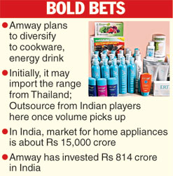 The company plans to bring out a range of cookware, energy drink and variants of food supplement Nutrilite to shore up revenues.